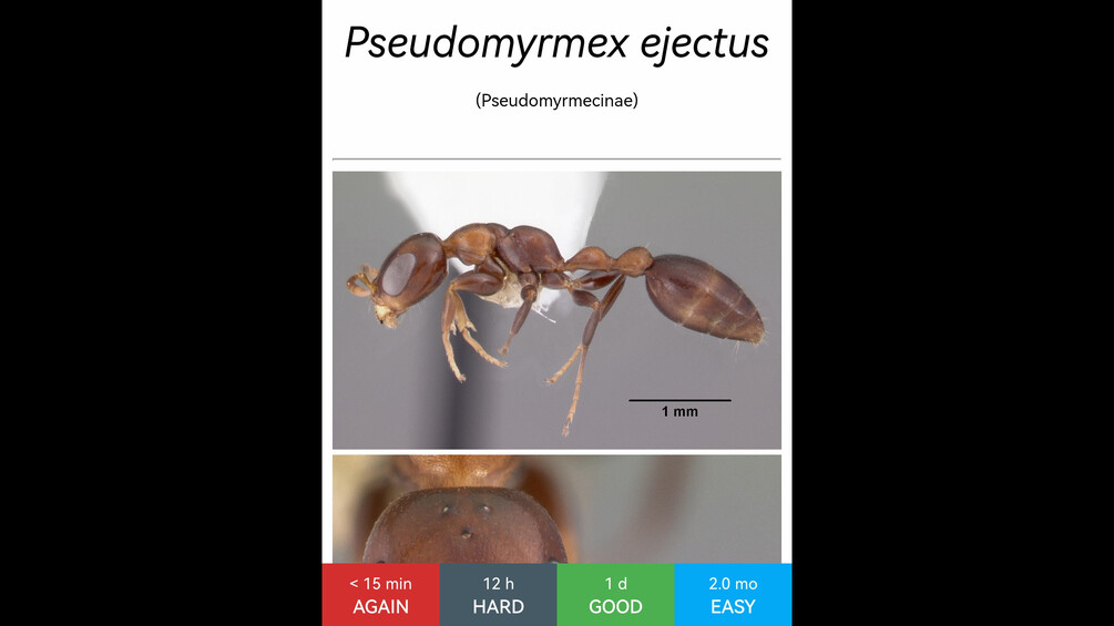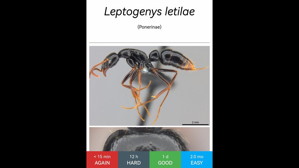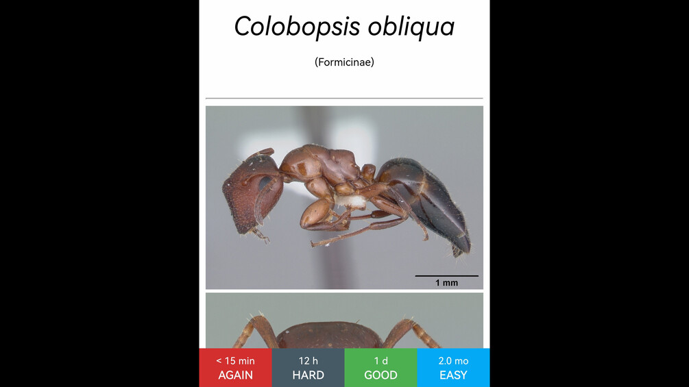 Ant ID Cards is a series of digital flashcard decks for use with Anki, a spaced repetition flashcard software available on Windows, Mac, Linux, Android, and iOS.